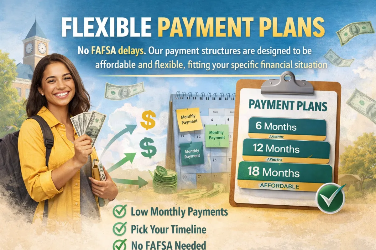 No FAFSA delays. Our payment structures are designed to be affordable and flexible, fitting your specific financial situation