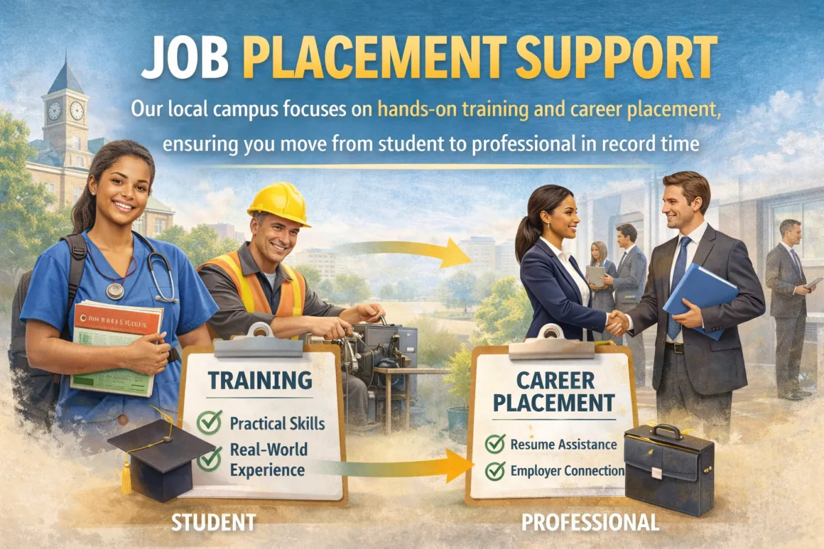 Our local campus focuses on hands-on training and career placement, ensuring you move from student to professional in record time